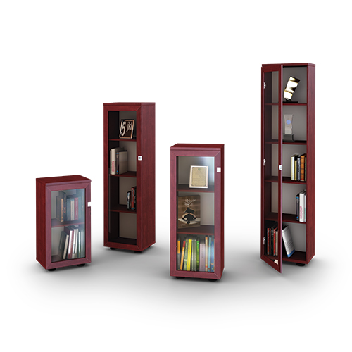 ویژگی‌ها دارای 2 تا 5 طبقه با درب شیشه‌ای و فریم چوبی برای نگهداری کتاب، زونکن و وسایل تزئینی و نمایشی